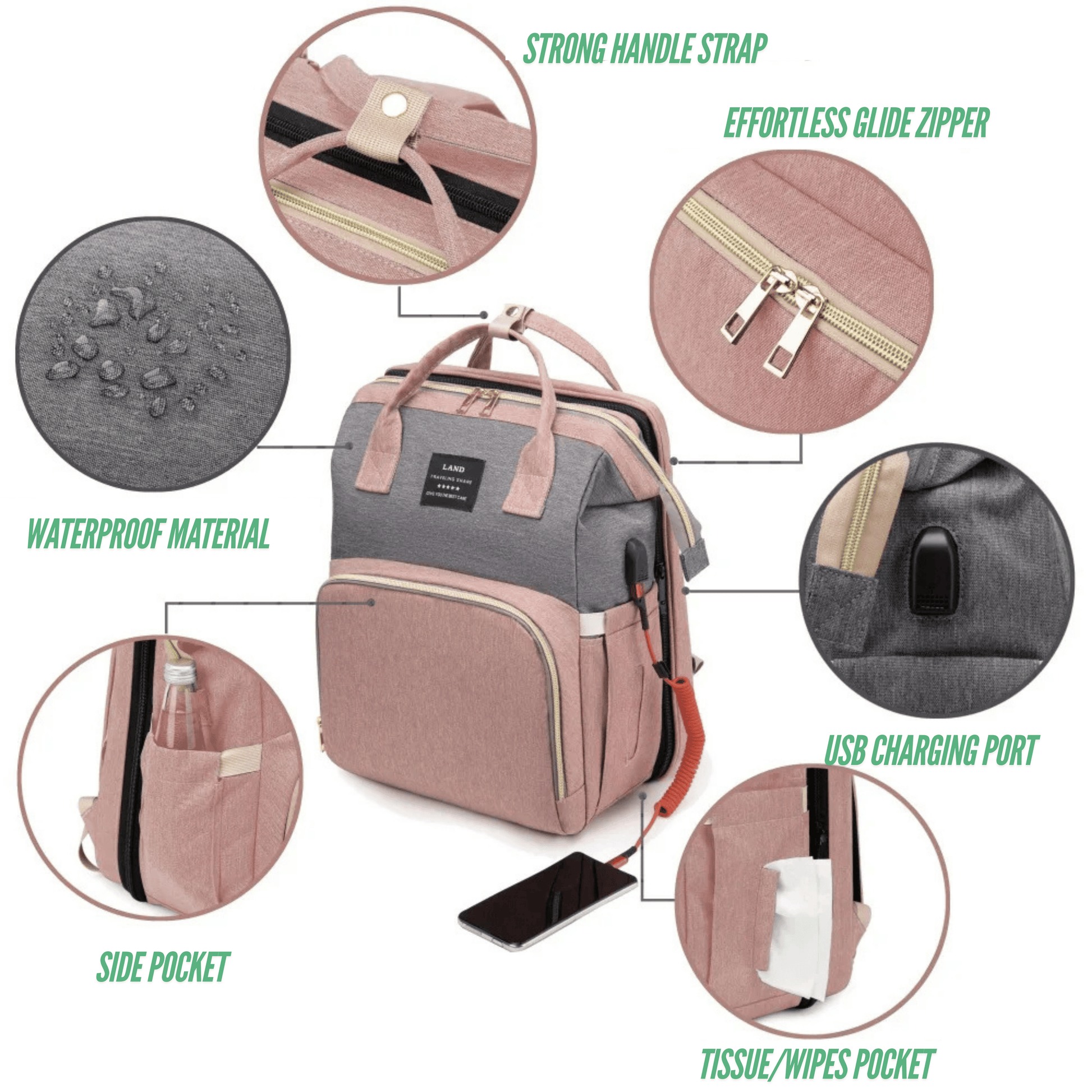 the ultimate travel maternity bag designed for moms who prioritize cleanliness and comfort. This versatile bag is not just a stylish backpack; it unfolds into a safe, clean crib bed for your baby. With its large-capacity design, you can store all your essentials in one place, ensuring you're always prepared. Made from lightweight, durable materials, it’s perfect for on-the-go moms who want both practicality and style.