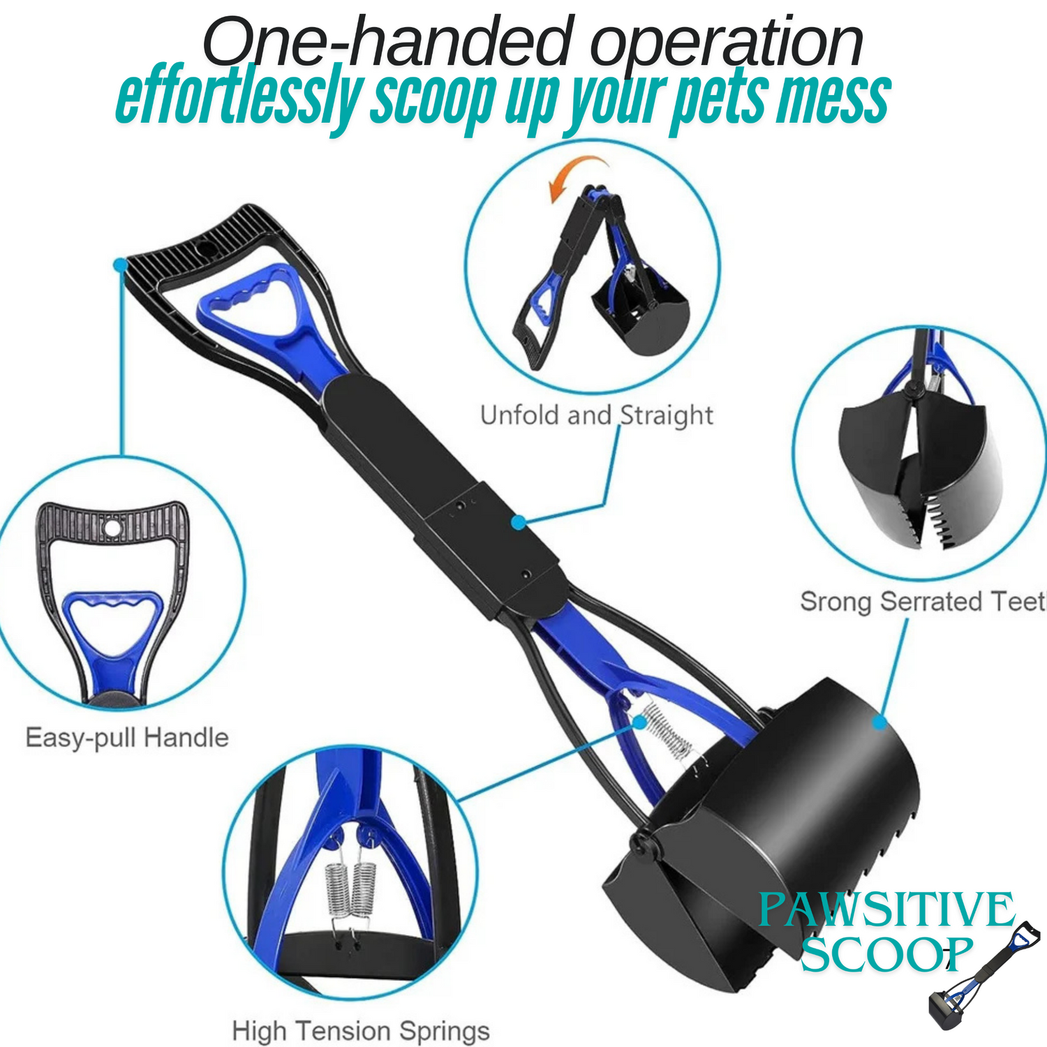 Introducing the Pawsitive Scoop—the perfect solution to your pet cleanup woes! With its ergonomic long handle, you can effortlessly scoop up waste without bending over, protecting your back and making the process quick and easy. The jaw-style design ensures a secure grip on all types of waste, and its foldable, portable nature allows you to take it anywhere your adventures lead.